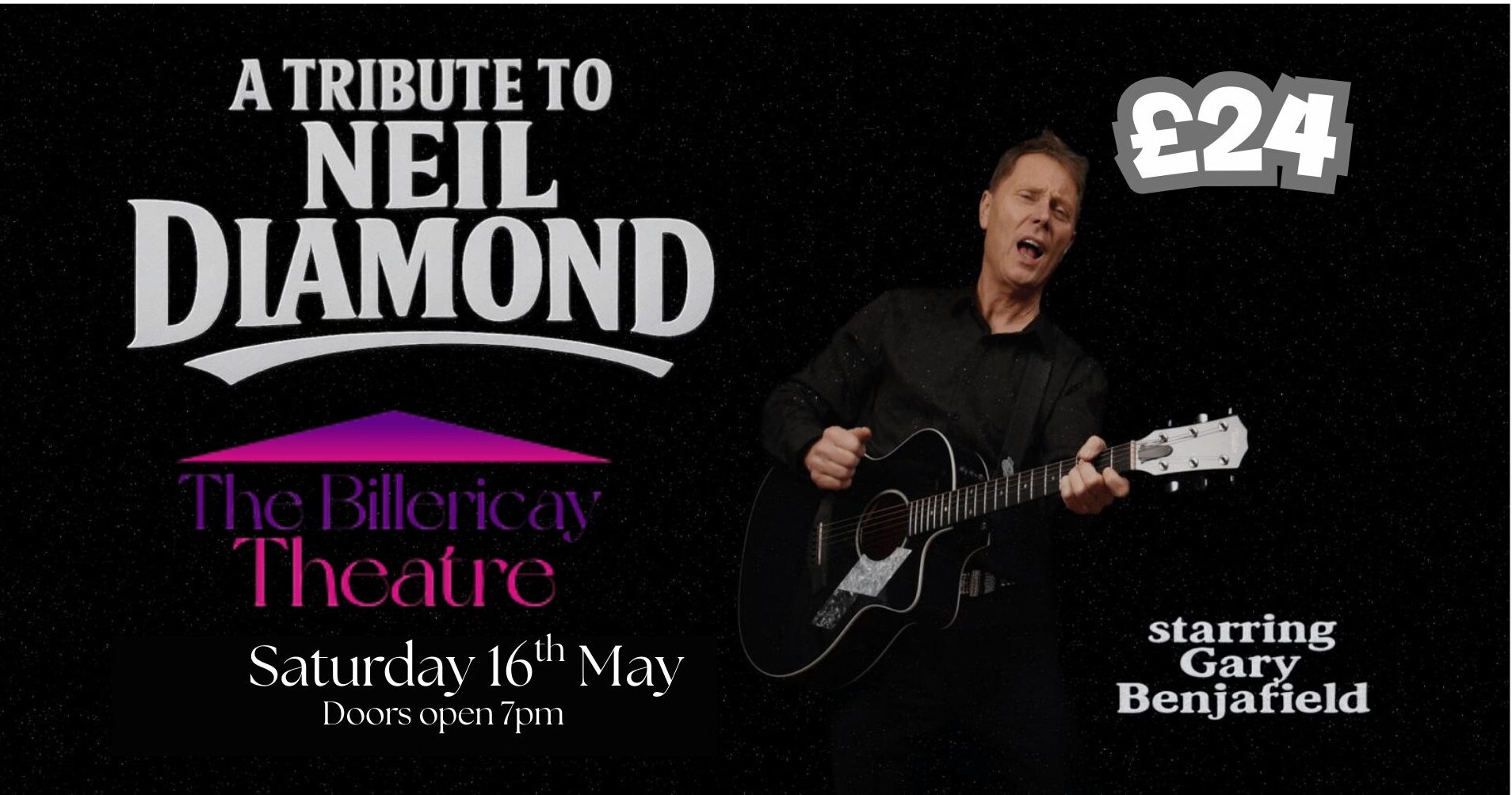 Back by popular demand, Gary Benjafields Neil Diamond tribute returns for an unforgettable evening celebrating the music of one of the world’s most iconic performers. Sing along to timeless classics including Sweet CarolineCracklin’ RosieForever in Blue Jeans and many more in this high-energy, feel-good show.
